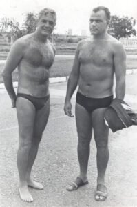 Visita de Kirk Douglas ao Iate – Setembro de 1962 Em setembro de 1962, o Iate Clube de Brasília recebeu a ilustre visita do renomado ator norte-americano Kirk Douglas, um dos grandes ícones do cinema de Hollywood. A presença do astro, conhecido por filmes como Spartacus e Glória Feita de Sangue, foi um marco para o clube e para a capital ainda jovem, atraindo grande atenção da sociedade brasiliense e reforçando o prestígio do Iate como ponto de encontro de personalidades nacionais e internacionais.