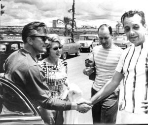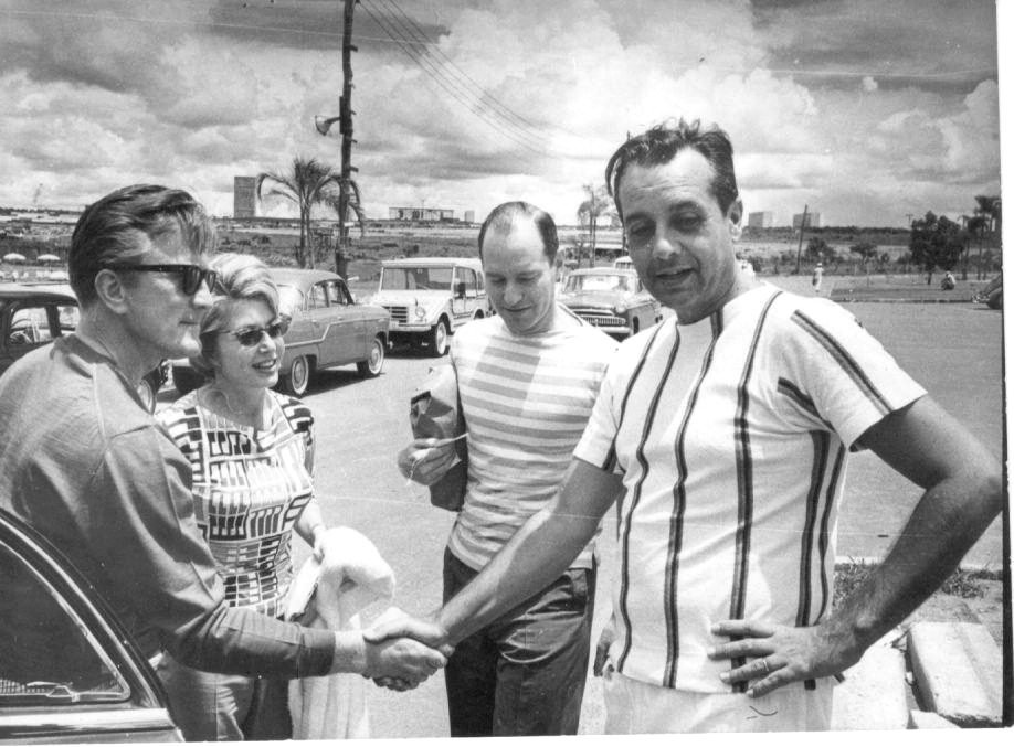Visita de Kirk Douglas ao Iate – Setembro de 1962 Em setembro de 1962, o Iate Clube de Brasília recebeu a ilustre visita do renomado ator norte-americano Kirk Douglas, um dos grandes ícones do cinema de Hollywood. A presença do astro, conhecido por filmes como Spartacus e Glória Feita de Sangue, foi um marco para o clube e para a capital ainda jovem, atraindo grande atenção da sociedade brasiliense e reforçando o prestígio do Iate como ponto de encontro de personalidades nacionais e internacionais.