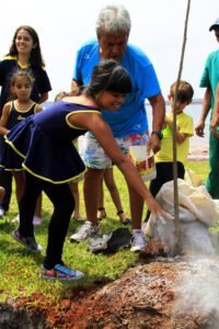 Os alunos também participaram de oficinas voltadas ao cultivo de mudas, aprendendo desde a preparação do adubo até a escolha das sementes, proporcionando uma experiência completa sobre o cuidado com a natureza.
