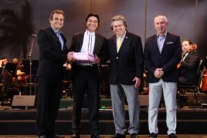 A apresentação ganhou um brilho especial com as participações do renomado maestro João Carlos Martins e da talentosa soprano Laetitia Grimaldi, que encantaram os presentes com performances marcantes.